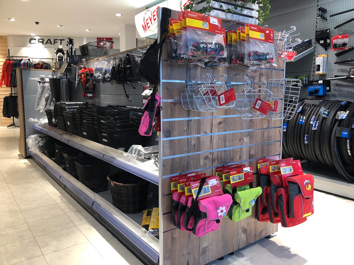 Trinkflaschen, Satteltaschen, Körbe, Regenbekleidung, Handschuhe, Fahrradschuhe u.v.m.